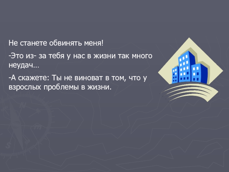 -А скажете: Ты не виноват в том, что у взрослых проблемы в жизни.