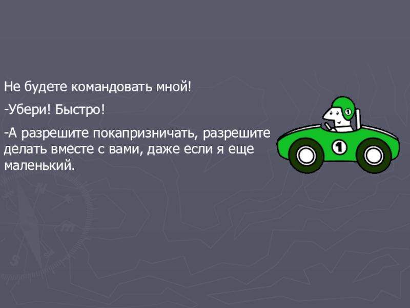 Не будете командовать мной!-Убери! Быстро!-А разрешите покапризничать, разрешите делать вместе с вами, даже если я еще маленький.