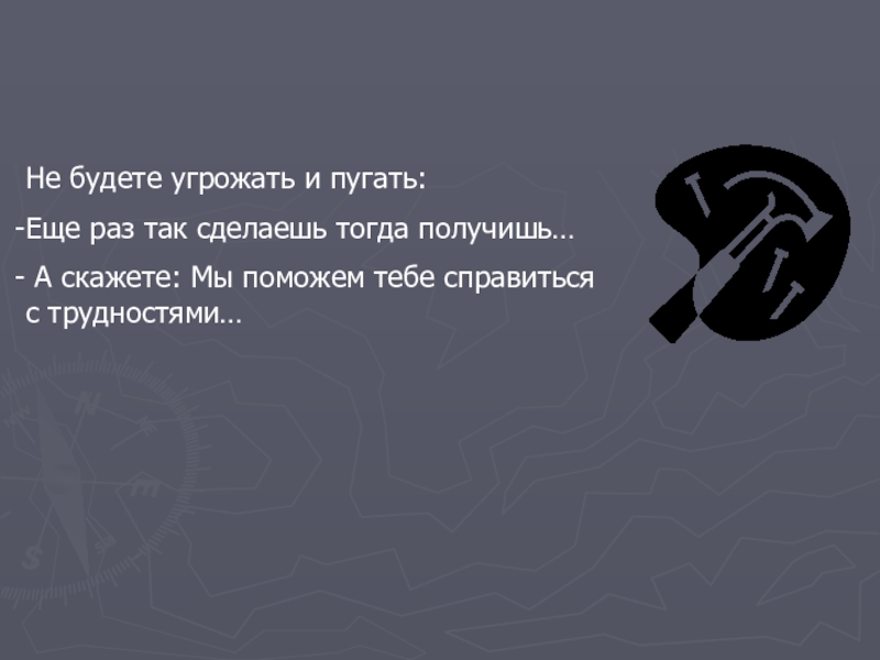 Не будете угрожать и пугать:Еще раз так сделаешь тогда получишь… А скажете: Мы поможем тебе справиться с