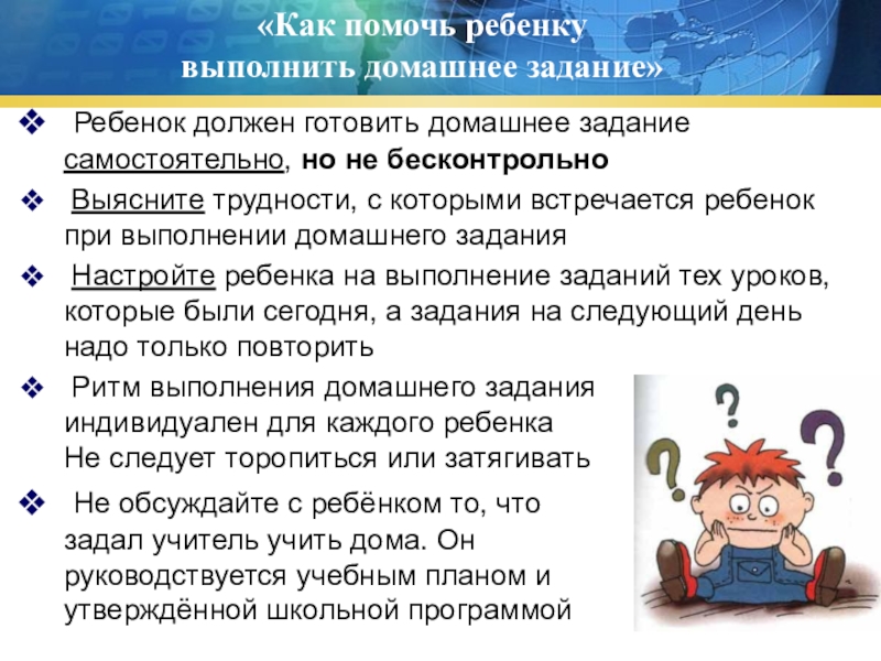 Выясните трудности, с которыми встречается ребенок при выполнении домашнего задания