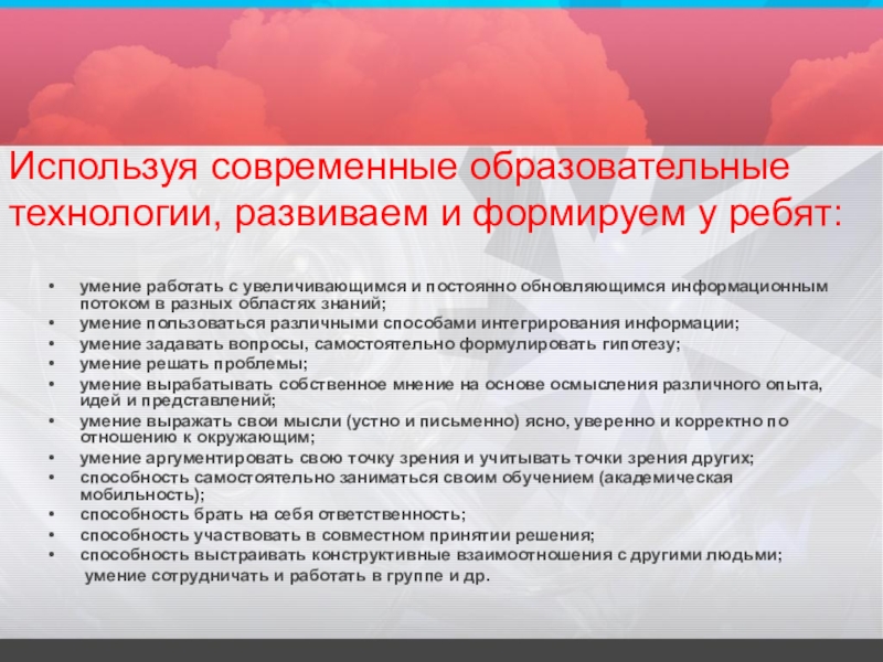 Слайд 8Используя современные образовательные технологии, развиваем и формируем у ребят: