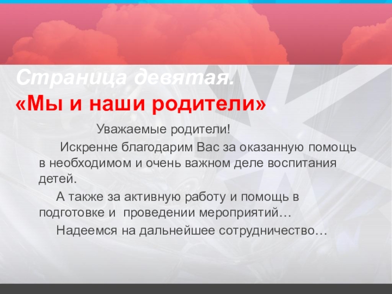 Искренне благодарим Вас за оказанную помощь в необходимом и очень важном деле воспитания детей.