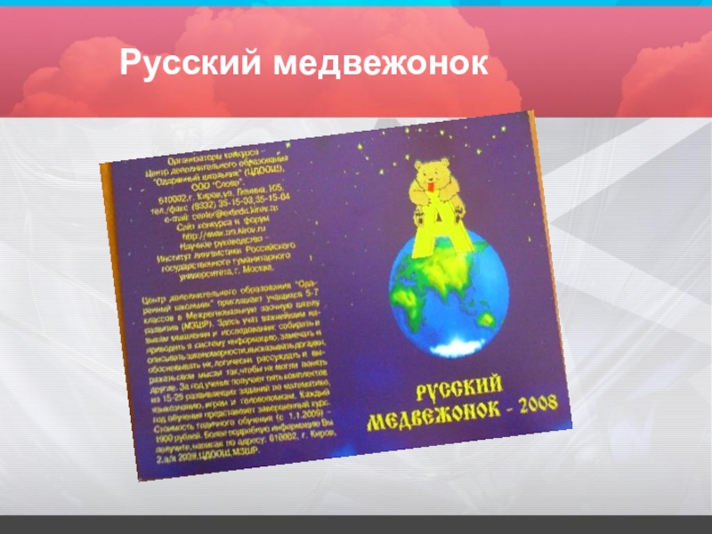 В игре-конкурсе «Русский медвежонок»,»Кенгуру»