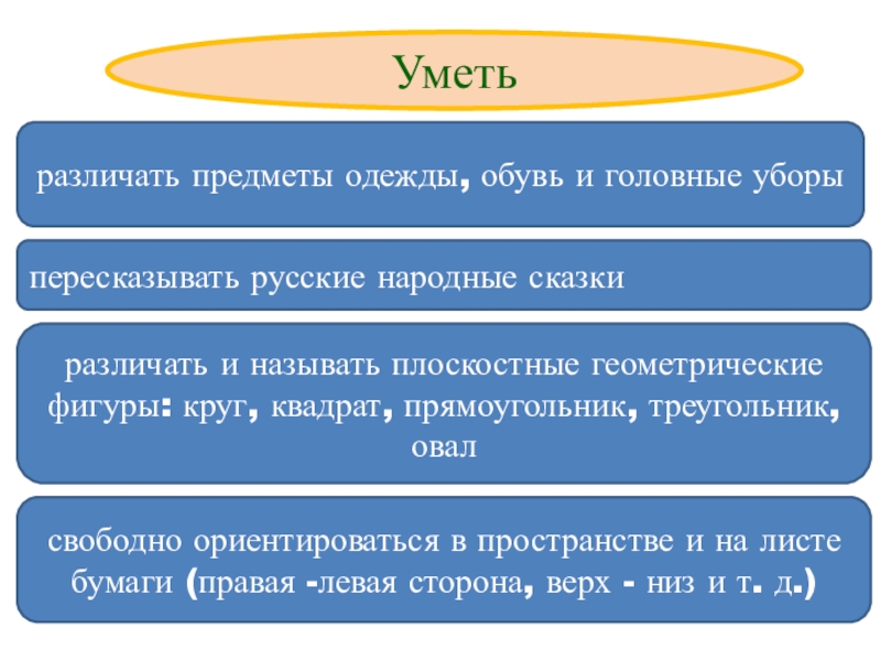 свободно ориентироваться в пространстве и на листе бумаги (правая -левая сторона, верх - низ и т. д.)