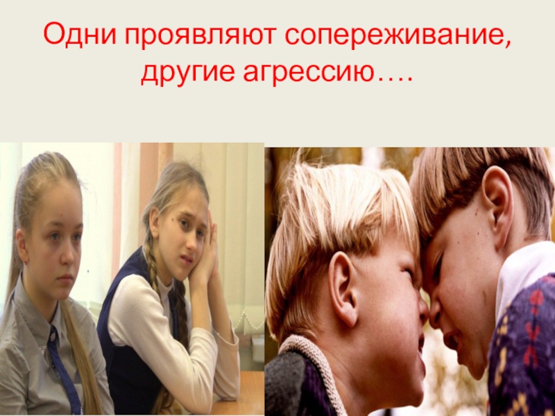 Слайд 7Одни проявляют сопереживание, другие агрессию….