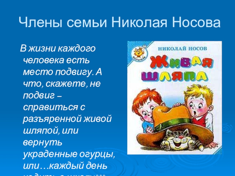место подвигу. А что, скажете, не подвиг – справиться с разъяренной живой шляпой, или вернуть украденные огурцы, или…каждый день ходить в школу???