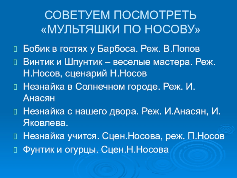 Слайд 15СОВЕТУЕМ ПОСМОТРЕТЬ «МУЛЬТЯШКИ ПО НОСОВУ»
