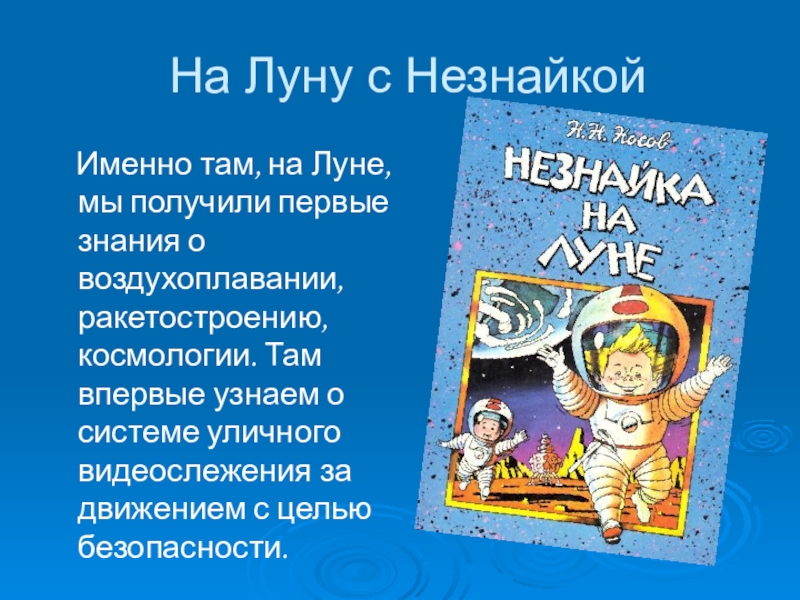 первые знания о воздухоплавании, ракетостроению, космологии. Там впервые узнаем о системе уличного видеослежения за движением с целью безопасности.