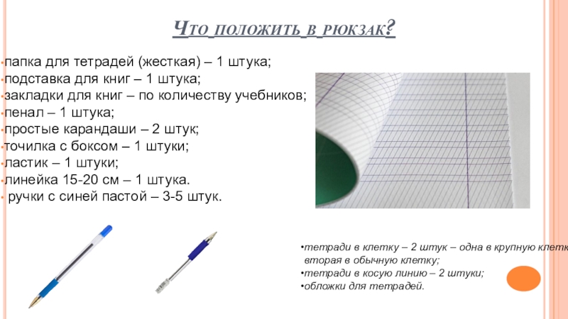 тетради в клетку – 2 штук – одна в крупную клетку,