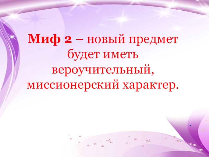 Миф 2 – новый предмет будет иметь вероучительный, миссионерский характер.