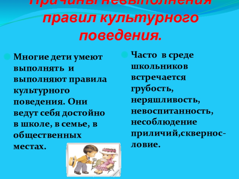 Часто в среде школьников встречается грубость, неряшливость, невоспитанность, несоблюдение приличий,сквернос-ловие.
