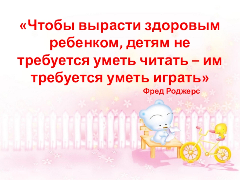Слайд 2«Чтобы вырасти здоровым ребенком, детям не требуется уметь читать – им