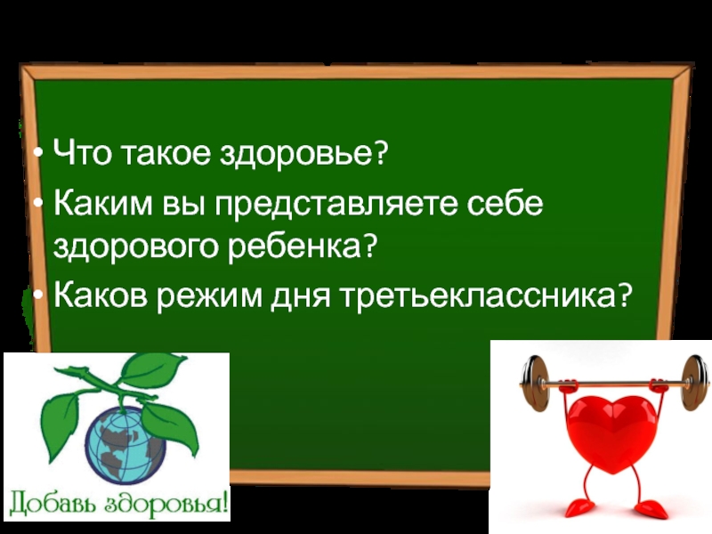 Вопросы родительского собрания: Что такое здоровье?Каким вы представляете себе здорового ребенка?Каков режим дня третьеклассника?