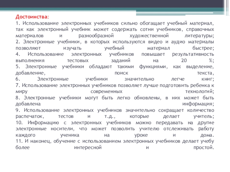 11. И наконец, обучение с использованием электронных учебников делает учебу более интересной и простой.