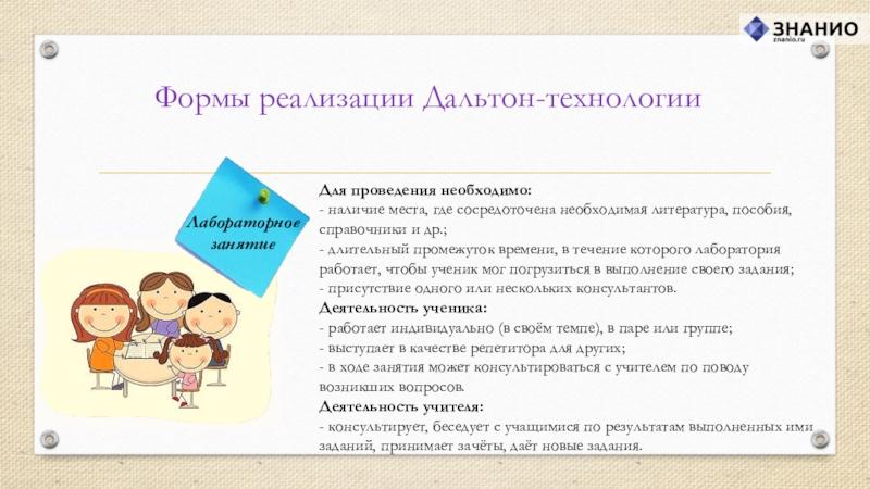 Слайд 27Формы реализации Дальтон-технологии
