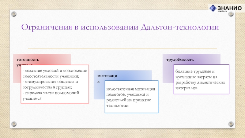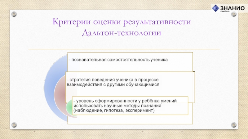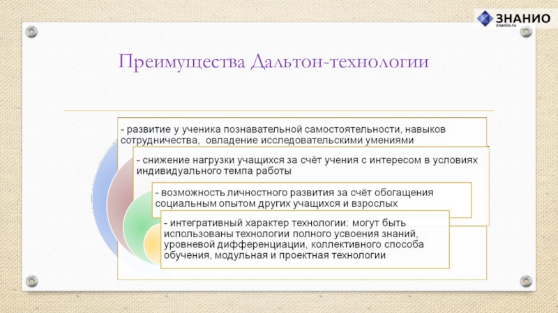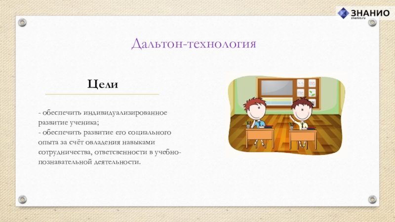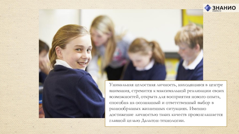 своих возможностей, открыта для восприятия нового опыта, способна на осознанный и ответственный выбор в разнообразных жизненных ситуациях. Именно достижение личностью таких качеств провозглашается главной целью Дальтон-технологии.