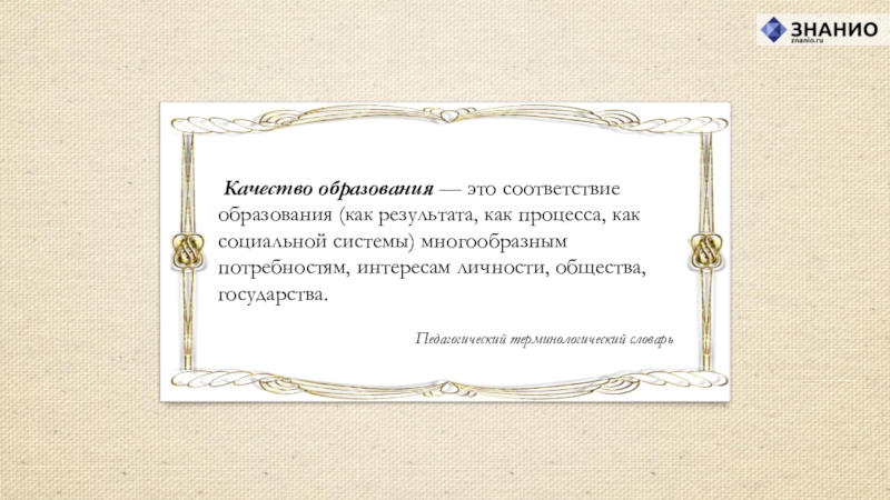 Качество образования — это соответствие образования (как результата, как процесса, как социальной
