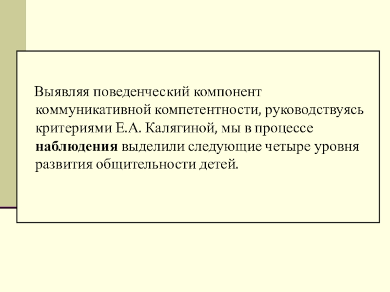 Е.А. Калягиной, мы в процессе наблюдения выделили следующие четыре уровня развития общительности детей.