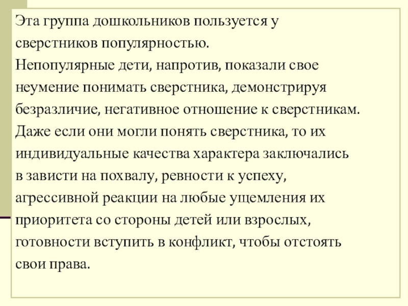 инициативность не являются теми качествами личности, которые свидетельствуют об эмоциональном восприятии и понимании другого и также не обеспечивают популярность ребенка в группе.