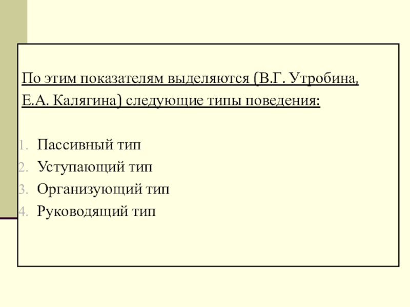 Е.А. Калягина) следующие типы поведения: