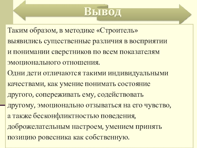 Слайд 39Таким образом, в методике «Строитель»