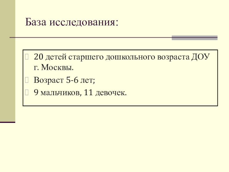 20 детей старшего дошкольного возраста ДОУ г. Москвы.