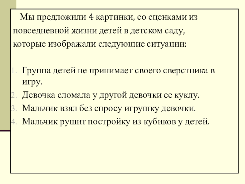 Слайд 6 Мы предложили 4 картинки, со сценками из