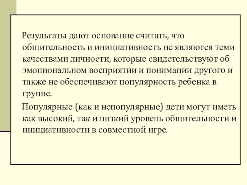 Популярные (как и непопулярные) дети могут иметь как высокий, так и низкий уровень общительности и инициативности в совместной игре.