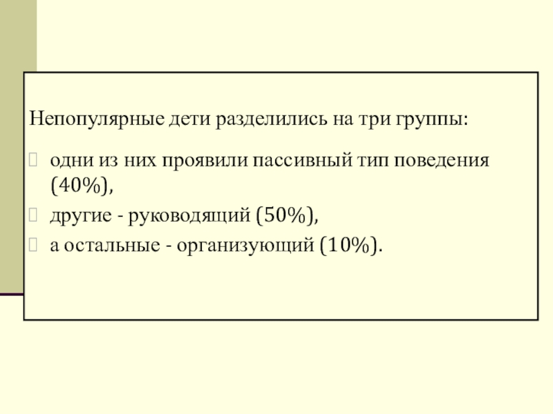 Непопулярные дети разделились на три группы:
