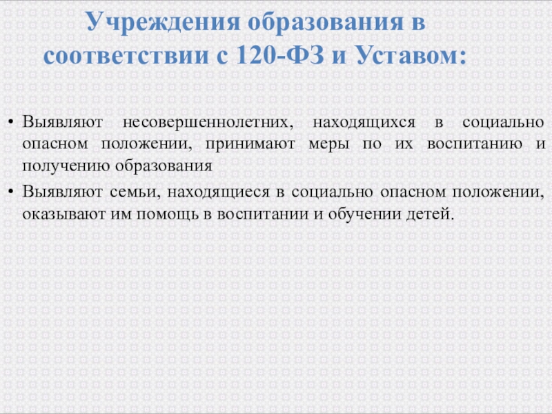 В соответствии с Законом, детский сад относится к органам и учреждениям системы профилактики безнадзорности и правонарушений несовершеннолетних, а также выявления семейного неблагополучия