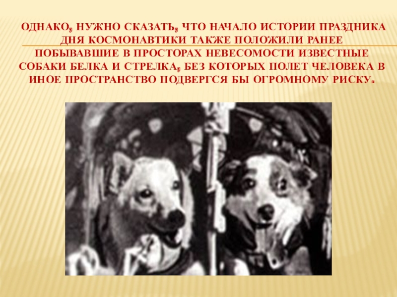 Слайд 4 Однако, нужно сказать, что начало истории праздника Дня космонавтики также положили
