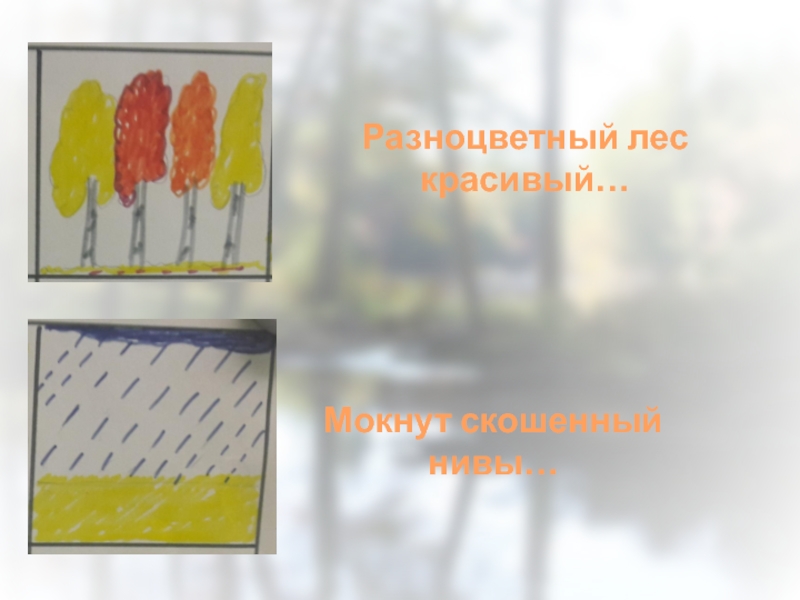 Разноцветный лес красивый…Мокнут скошенный нивы…