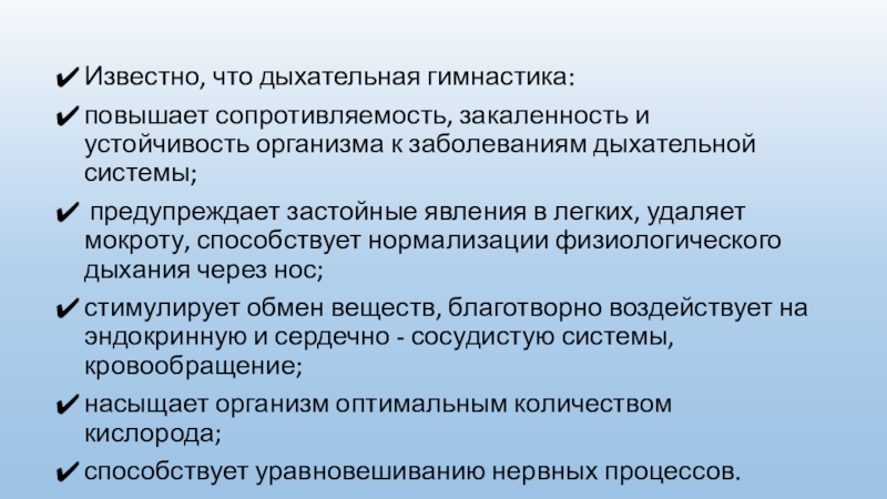 Слайд 3Известно, что дыхательная гимнастика: