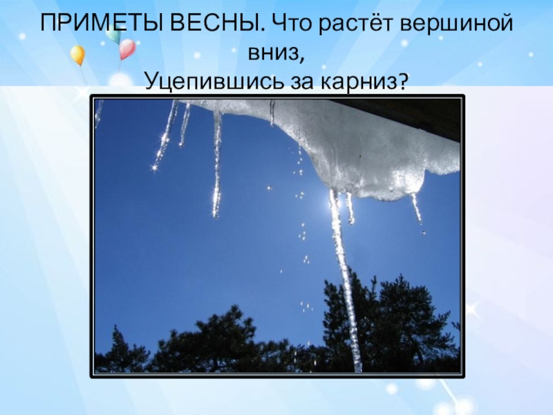 Слайд 4ПРИМЕТЫ ВЕСНЫ. Что растёт вершиной вниз,