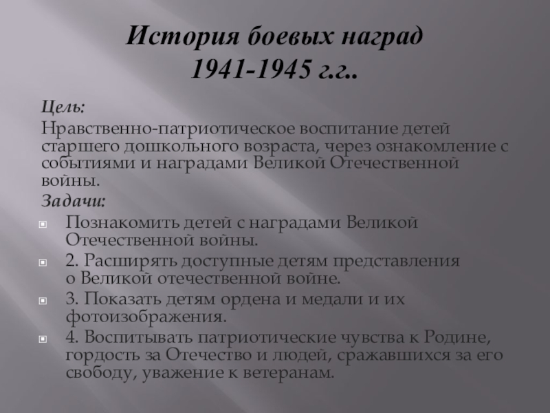 2. Расширять доступные детям представления о Великой отечественной войне.