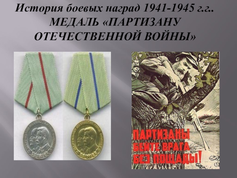 МЕДАЛЬ «ПАРТИЗАНУ ОТЕЧЕСТВЕННОЙ ВОЙНЫ»