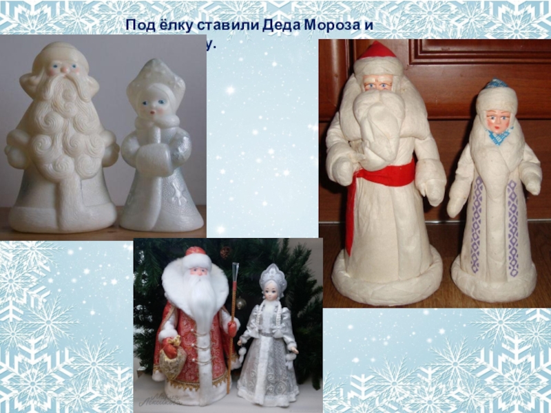 Слайд 8Под ёлку ставили Деда Мороза и Снегурочку.