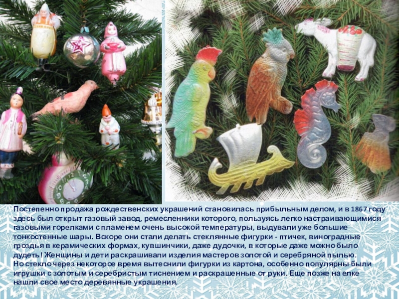 Слайд 4Постепенно продажа рождественских украшений становилась прибыльным делом, и в 1867 году