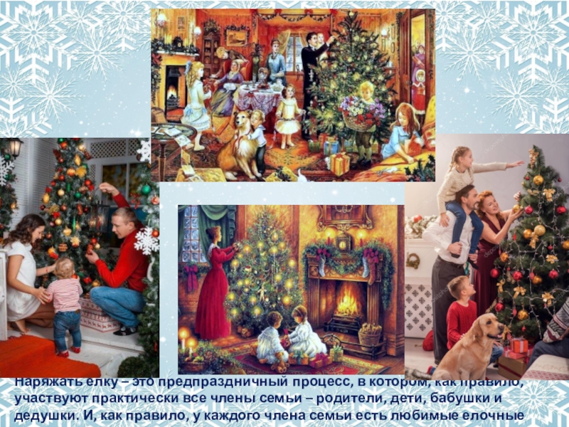 Слайд 11Наряжать елку – это предпраздничный процесс, в котором, как правило, участвуют
