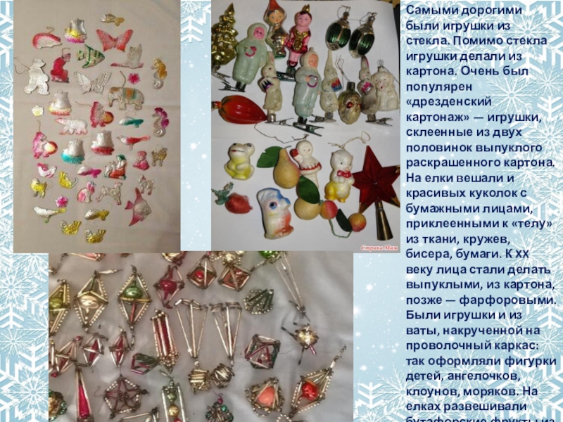 Слайд 6Самыми дорогими были игрушки из стекла. Помимо стекла игрушки делали из