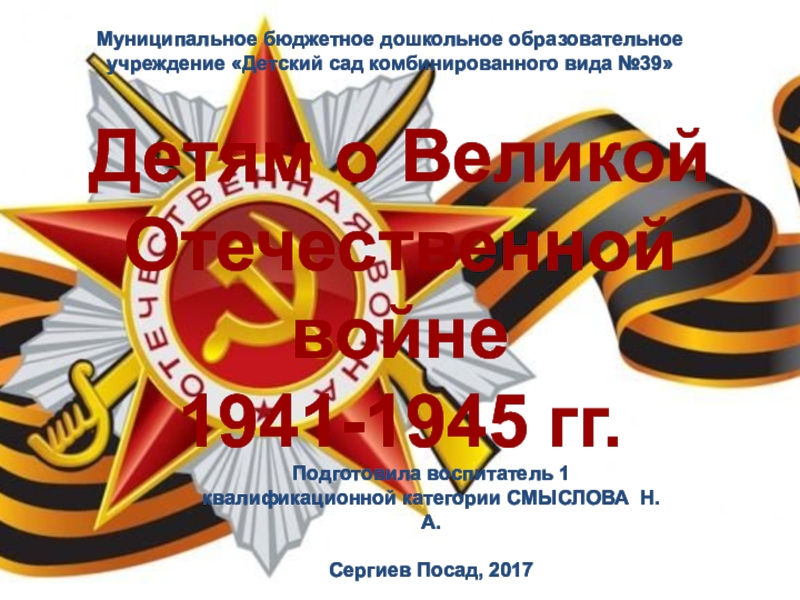 Подготовила воспитатель 1 квалификационной категории СМЫСЛОВА Н.А.