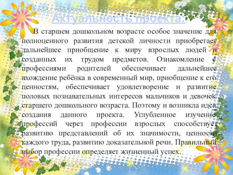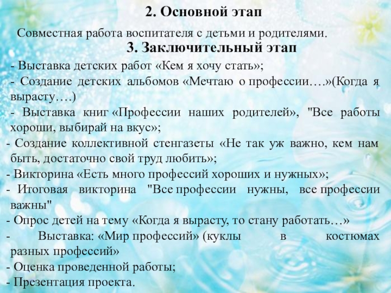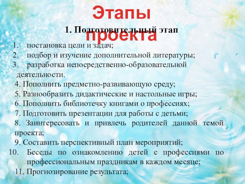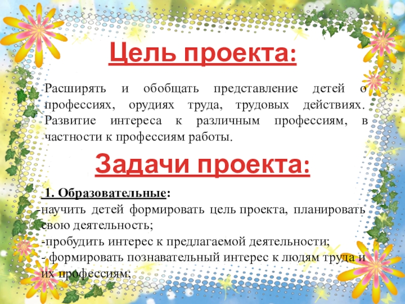8. Заинтересовать и привлечь родителей данной темой проекта;