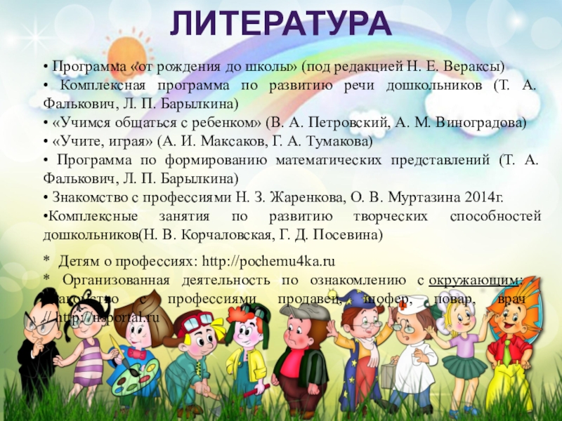 * Организованная деятельность по ознакомлению с окружающим: Знакомство с профессиями продавец, шофер, повар, врач // http://nsportal.ru