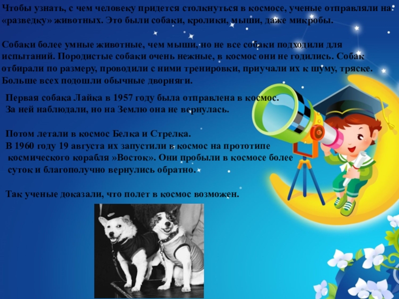 Первая собака Лайка в 1957 году была отправлена в космос.
