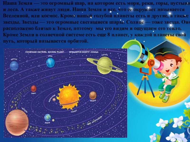 Спустя много лет астроном Николай Коперник доказал, что Земля и другие планеты вращаются вокруг Солнца. Ньютон понял, почему планеты вращаются вокруг Солнца и не падают. Они все летят вокруг Солнца по своему пути.