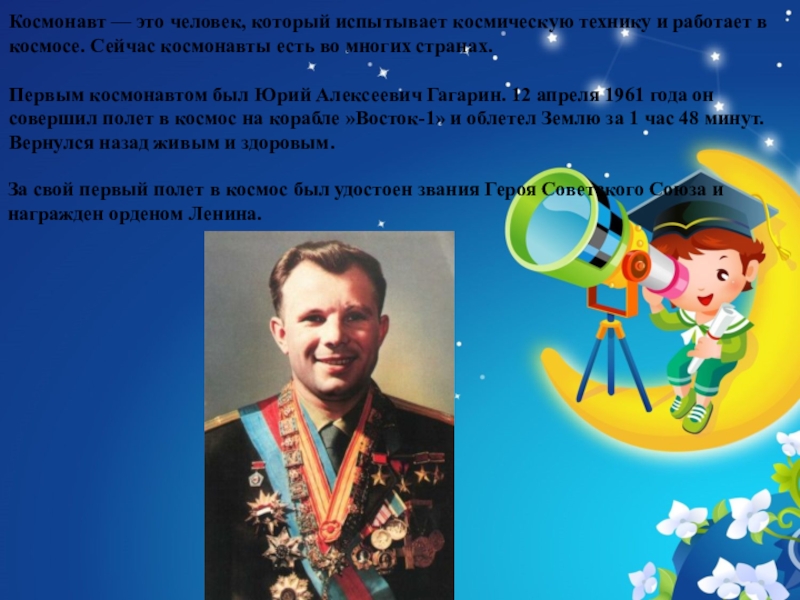 За свой первый полет в космос был удостоен звания Героя Советского Союза и награжден орденом Ленина.