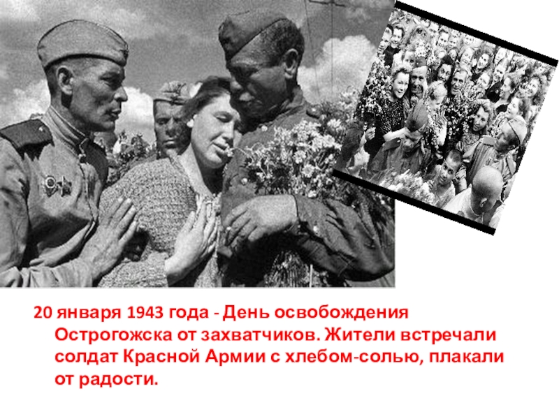 Слайд 1120 января 1943 года - День освобождения Острогожска от захватчиков. Жители