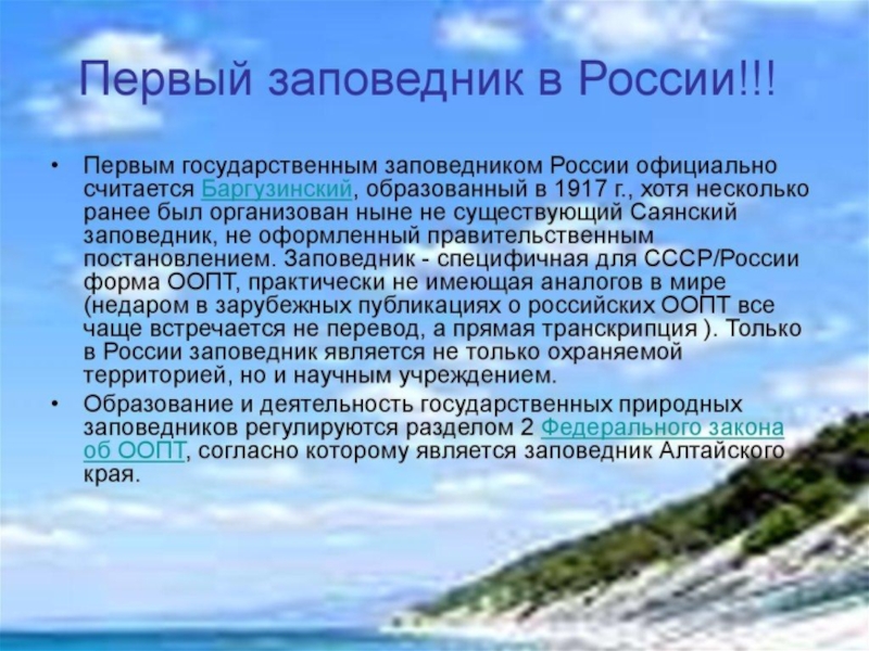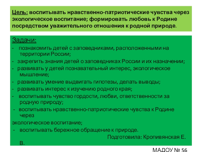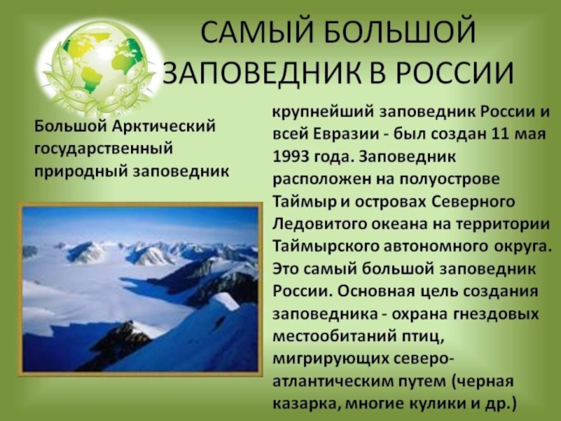 - познакомить детей с заповедниками, расположенными на территории России;
