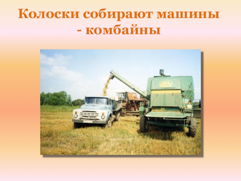 Слайд 7Колоски собирают машины - комбайны