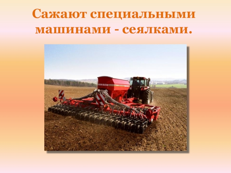 Слайд 4Сажают специальными машинами - сеялками.